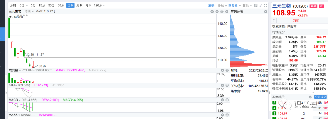 破发。发行价格109元。