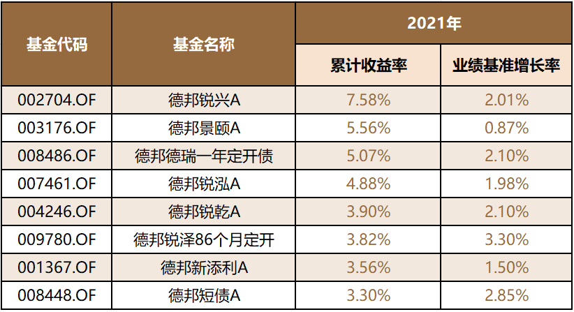 【2021德邦基金固收类产品绩优榜单】