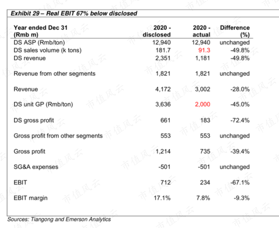 基于做空机构估算的EBIT利润率,以及气模具钢真实销售量仅为披露的一半这两个基本假设,做空机构推断出: