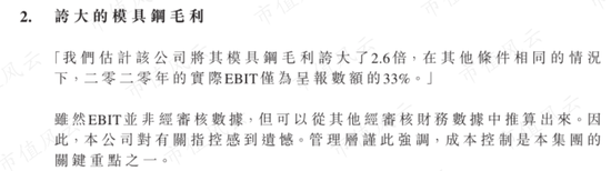 模具钢业务在2020年的真实毛利为1.8亿元,比披露的低72.4%;