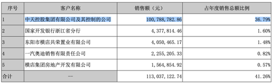 深交所对其物业管理毛利率的态度,或与*ST巴士关联交易占比较大有关。2021年年报显示,*ST巴士前5大客户资料中,排在第一位的中天控股集团有限公司及其控制的公司的销售额为1.01亿元,占年度销售总额的36.79%。