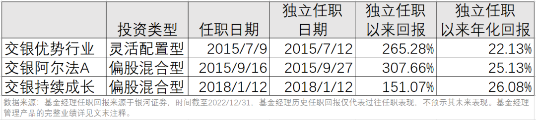 三只基金独立任职之后的年化回报,均超过20%。