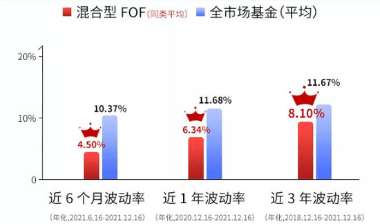 根据数据显示,自2018年以来,混合型FOF基金近三年收益率为39.2%,远超沪深300指数的17.24%和中证全债指数的14.15%。而同期的波动率只有8.1%,少于全市场平均的11.67%。可见混合型FOF基金真正做到了市场下行少亏钱,市场上行多赚钱,在稳稳的幸福下实现财富的保值增值。