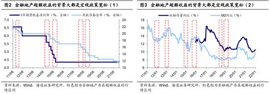回顾历史,金融地产存在超额收益的历次行情背后大都是政策宽松。回顾上述6次行情的宏观背景,政策宽松是金融地产超额收益的重要基础,其中5次行情都伴随着存款准备金率或贷款基准利率的下调,12年底的行情背景是十八届一中全会召开。具体而言:第1次行情:2011/11/30央行宣布降准0.5个百分点,2012/2/18央行再次宣布降准0.5个百分点;第2次行情:2012/11/15中共十八届一中全会选举产生新一届中央领导机构,2012/12/31中央政治局集体学习提出以更大的政治勇气和智慧深化改革;第3次行情:2014/11/22央行宣布下调金融机构一年期贷款基准利率0.4 个百分点,下调一年期存款基准利率0.25 个百分点;第4次行情:2015/8/25央行宣布下调金融机构人民币贷款和存款基准利率0.25个百分点,同时宣布降准0.5个百分点,2015/10/23央行再次降息0.25个百分点,同时宣布降准0.5个百分点;第5次行情:2018/6/24央行宣布定向降准0.5个百分点,2018/10/7央行再次宣布降准1个百分点;第6次行情:2019/1/4央行宣布降准1个百分点。