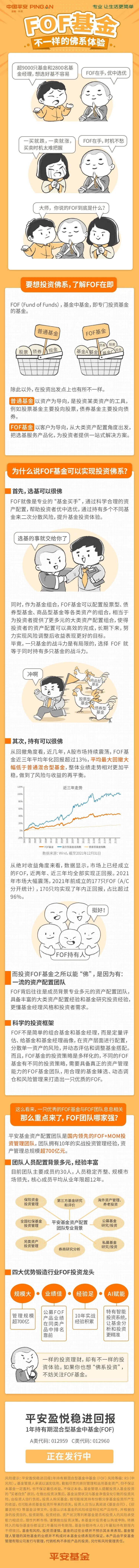 风险提示:平安盈悦稳进回报1年持有期混合型基金中基金(FOF)风险等级:R3(中风险)。基金有风险,投资须谨慎。基金的过往业绩并不预示其未来表现,基金管理人管理的其他基金的业绩并不构成对本基金业绩表现的保证。基金管理人承诺以诚实信用、勤勉尽责的原则管理和运用基金资产,但不保证本基金一定盈利,也不保证最低收益,不保证本金。基金管理人提醒投资人基金投资的“买者自负”原则,在做出投资决策后,基金运营状况与基金净值变化引致的投资风险,由投资人自行负担。投资人购买基金,既可能按其持有份额分享基金投资所产生的收益,也可能承担基金投资所带来的损失。投资人应当认真阅读《基金合同》、《招募说明书》等基金法律文件,全面认识本基金的风险收益特征和产品特性,并根据自身的投资目的、投资期限、投资经验、资产状况等判断基金是否和投资人的风险承受能力相适应,理性判断市场,谨慎做出投资决策。本基金对投资者认购或申购、转换转入的每份基金份额设定1年最短持有期限,基金份额持有人在1年最短持有期限内不得赎回。