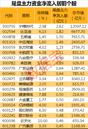 宁德时代、比亚迪、五粮液、中远海控、东方财富、中航西飞获主力资金尾盘净流入超亿元。宁德时代连续四个交易日获北上资金持股量增加,公司近日在投资者调研活动中表示,公司通过长协、投资合作、回收利用、自行开采等方式保障锂资源供应。其中,回收方面,锂回收率已超90%,锂回收目前已在供应保障中起到一定作用;除了此前海外投资合作外,公司也在宜春等地投资锂资源,自行开采锂矿。