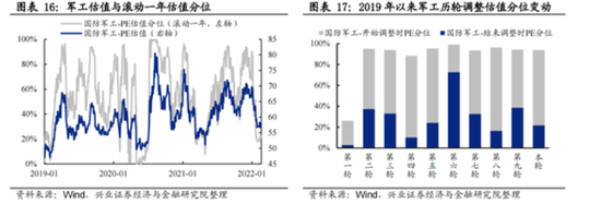 从估值来看,军工板块当前PE估值为57.5x,本轮调整军工板块的估值分位由93.9%大幅回落至21.6%,回落幅度也已处于历轮调整的较高水平。