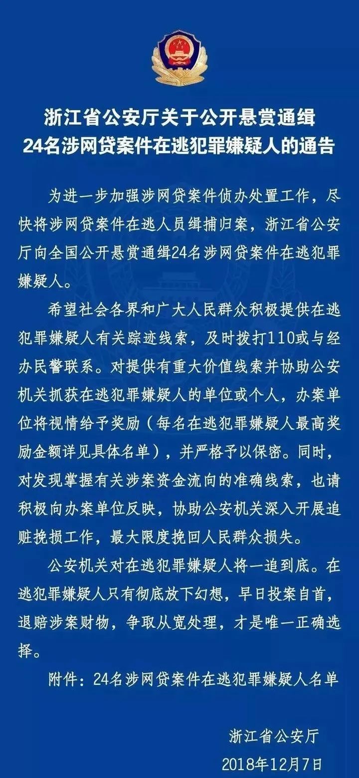早在2018年,浙江省公安厅重磅发布悬赏通缉令,涉及24名涉网贷案件在逃犯罪嫌疑人,陈刚也在其中。