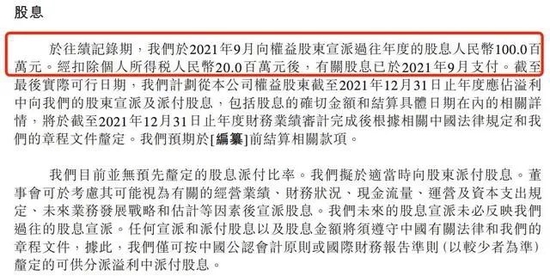 值得一提的是,杨国福的管理层还在该公司上市前进行了紧急“套现”。招股书显示,杨国福在2021年9月向权益股东宣派了人民币1亿元的股息。经扣除个人所得税后2000万元后,有关股息已于2021年9月支付。