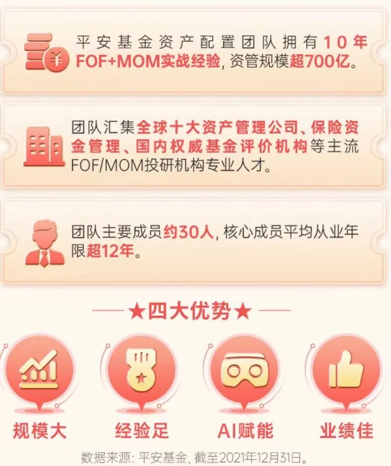 在此背景下,小编家匠心打造的FOF新品——平安盈悦稳进回报1年持有混合FOF(A类:012959,C类:012960)目前正在发行中。