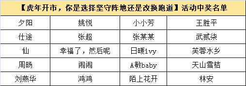 最后,附上上一期活动的中奖名单,感谢大家的积极参与!