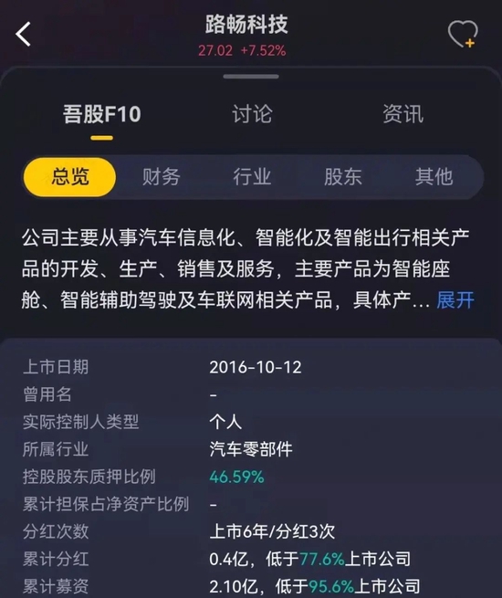 上市5年来,路畅科技共分红3次,累计分红0.4亿元,而这样的企业最新市值竟然还有30多亿,风云君实在不知道这是在炒啥?你们非要在那啥里挑金针菇吃吗?