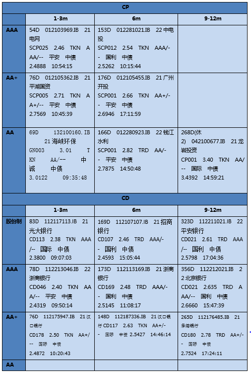 22中交三航SCP003,,4e, AAA/-, 180D,央企,【2.38】,南京银行, 2022-09-21,周三到期