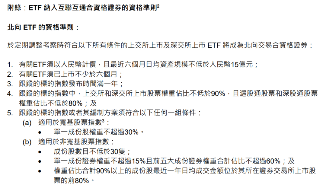 A股市场的ETF也存在互联互通的准入条件,比如ETF日均资产规模不低于15亿人民币。但这个限制对于A股来说,微不足道。