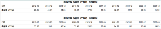 而腾讯市盈率目前又处于6年低点,6月27日其市盈率(TTM)仅为14.71。这比去年段永平发声“抄底”腾讯时还低,彼时腾讯市盈率是20左右。