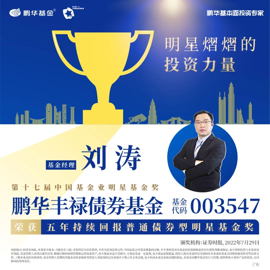 7月29日,2022年度第十七届中国基金业明星基金奖榜单隆重揭晓。本届评选活动注重基金的中长期业绩表现,从评奖方法、评价指标、结果发布等多方面继续进行完善,旨在以更好发挥评奖指挥棒作用,推动公募基金行业健康发展。经过严格筛选和综合评定,鹏华基金旗下鹏华环保产业(000409)凭借出色业绩表现,一举夺得“五年持续回报股票型明星基金奖”,也彰显出掌舵人孟昊的投研实力再获权威认可;由“金牛”、“晨星”、“明星”多奖加持的鹏华固收名将刘涛管理的鹏华丰禄债券基金(003547)再次喜提“五年持续回报普通债券型明星基金奖”,这是鹏华丰禄债券继今年摘得晨星奖后再一次获奖,能够在短时间内收获多个业内大奖实属难得,也彰显了其持续优秀的投资实力。