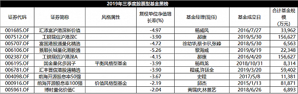 上表中综合得分垫底的是汇添富沪港深新价值(001685),三季度净值下跌近5%。从前三季度表现来看,目前收益率为8%,同期沪深300指数上涨27%,远远落后大盘与同类产品。很明显这只基金错过了A股今年的行情。