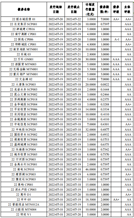 上周取消发行3只债券,取消发行规模合计33亿元。