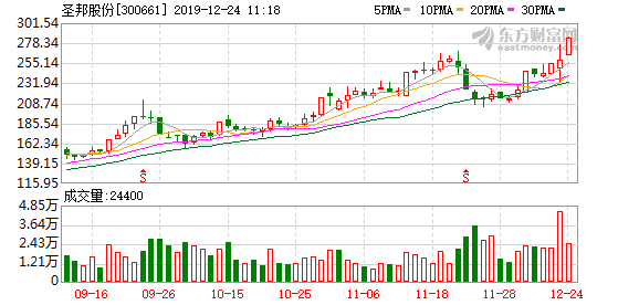 12月24日,国产芯片板块早盘异动拉升,板块涨超1%,圣邦股份盘中涨停,北京君正、江化微等个股涨超5%,兆易创新涨超3%。