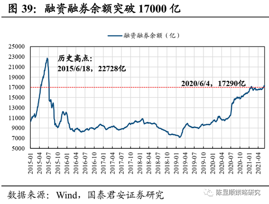 两融方面,融资融券余额突破17000亿,融资买入额占全A成交额本期亦上行明显。融资融券余额,截至2021年6月4日,融资融券余额为17290.7亿。近两周融资融券余额均值为17182.2亿,较再前两周的16797.0亿上行2.29%。本期融资买入额占全A成交额比例亦上行明显,近两周融资买入额占全A成交额比例均值为9.40%,较再前两周的9.21%环比上行2.03%。