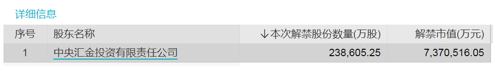 中信建投6月21日解禁的股份来自单一股东——中央汇金投资有限责任公司。