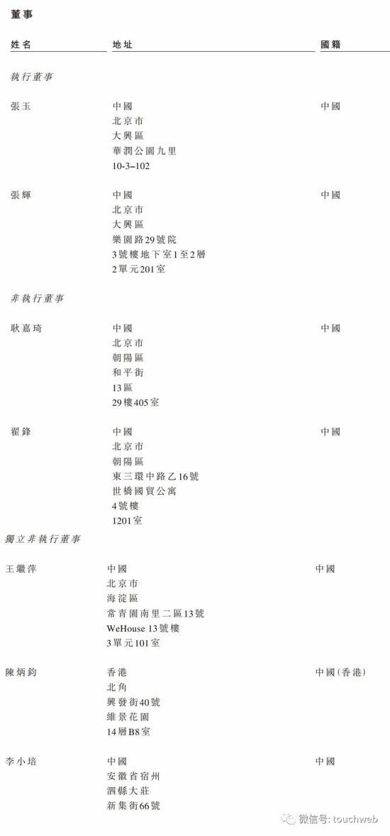 雍禾医疗执行董事分别为张玉、张辉;非执行董事为耿嘉琦、翟锋;独立非执行董事为王继萍、陈炳钧、李小培。
