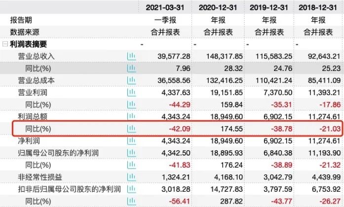 不仅是商品的销售价格存在季度波动性,众兴菌业的年度业绩表现也常常发挥不稳定,Wind数据显示,最近三年,众兴菌业年度业绩仅有2020年实现了营收利润双增。2021年一季度营业利润同比缩减44.29%,归母净利润同比缩减41.83%,出现了较大幅度的同比下滑。