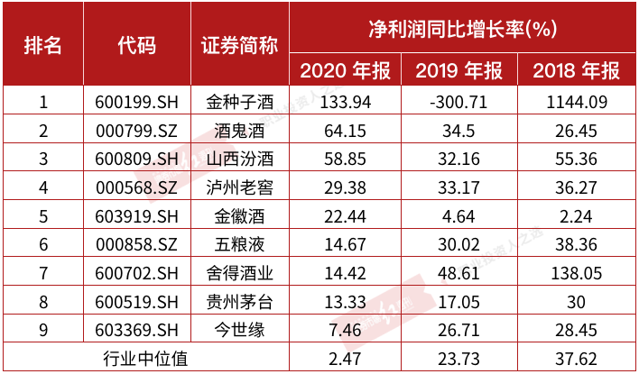 数据来源:Wind,注:按2020年净利润同比增长率排序