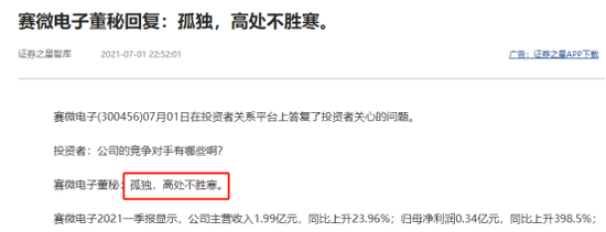 而傲娇的董秘却回复:孤独,高处不胜寒。