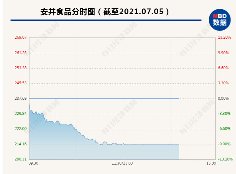 7月5日,“火锅料”的细分龙头安井食品(603345,SH)今早开盘后一路走低,上午11点股价已经躺在跌停板上,虽然盘中有资金翘板但无奈卖单太大,股价仍然被摁回跌停板上,纹丝不动。