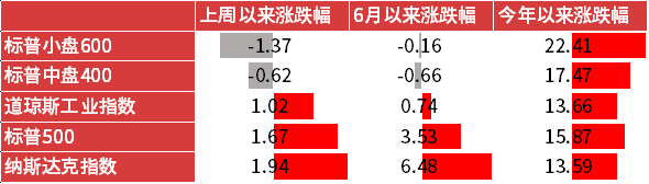 今年以来,美股主要指数实现涨幅13%-22%不等,其中标普小盘600涨22.41%,涨幅靠前。