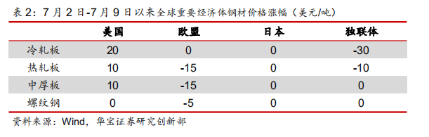截止7月9日,美国材价格上涨有放缓的趋势,欧盟钢价有环比下降趋势,日本、独联体钢材价格上涨有趋稳态势。但整体仍然高于国内,这也将对国内钢材出口形成支撑。