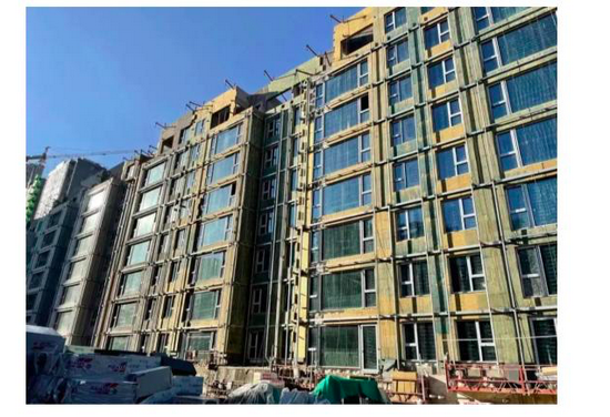 利航观棠采用了多种保温+外立面体系,其中6层洋房采用石墨改性模塑聚苯板薄抹灰系统+干挂石材幕墙+铝格栅幕墙体系;8层洋房采用岩棉薄抹灰系统+干挂石材幕墙+铝格栅幕墙体系;28层高层采用石墨改性模塑聚苯板板薄抹灰系统+底层干挂石材幕墙+外墙真石漆体系。堪称居住建筑薄抹灰体系的“博览会”。