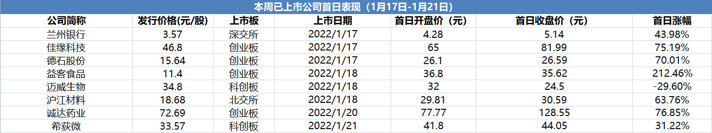 1月18日上市的益客食品表现突出,首日涨幅达到212.46%,每中一签即可获利11605元。