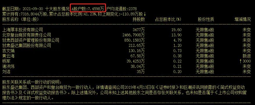 昔日与茅台齐名的名酒,俨然变成了“名韭”。据皇台酒业2021年三季报显示,公司A股股东户数高达7.46万户。