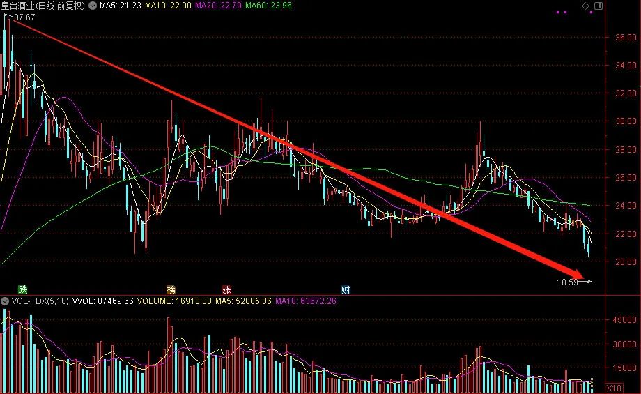 1月27日早盘开盘,皇台酒业便被大手封单,牢牢封于一字跌停,直至收盘,报18.59元,较半年多前的高点37.67元腰斩过半。