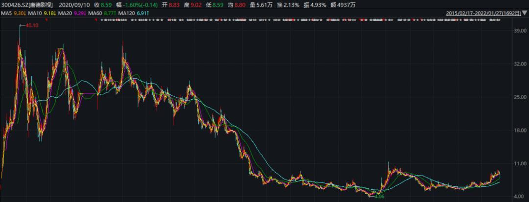 截至2022年1月27日收盘,唐德影视报收于8.22元/股,当前总市值为34.09亿元。