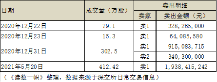 2021年5月20日,即大跌前一天,深交所披露的数据显示,一位卖家通过中天国富证券吉林分公司的营业部,以大宗交易方式卖出套现19.38亿元。