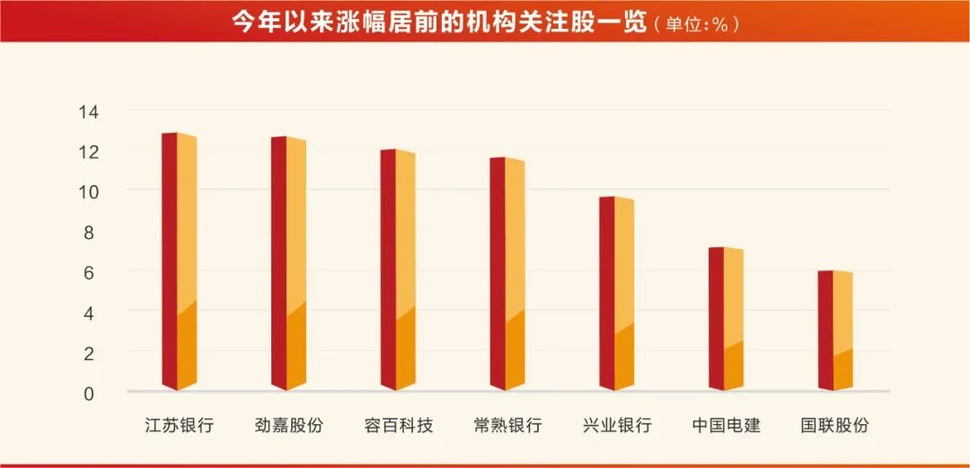 年初至今,A股市场个股以回撤为主,部分机构关注股表现较为抗跌,14只个股累计涨幅为正值,江苏银行、劲嘉股份、容百科技、常熟银行逆势上涨10%以上。