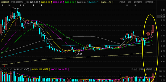 节后最典型的例子就是总市值超万亿的中国石油,今天5连阳同样创出3个多月新高,收盘涨逾5%。