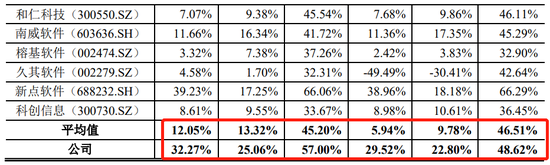 报告期各期,发行人的加权平均净资产收益率分别为29.52%、32.27%、41.24%和 9.89%,净利润率分别为 22.80%、25.06%、32.74%和 21.55%,毛利率分别为 48.62%、57.00%、60.70%和 59.34%均明显高于行业均值。