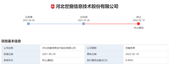 2022年2月11日,世窗信息发布《关于申请公开发行股票并在创业板上市及进展公告》,公告称公司基于上市战略调整等因素考虑,经过审慎研究,决定暂缓推进上市进程,终止IPO上市工作并申请撤回首次公开发行股票并在创业板上市申请文件。