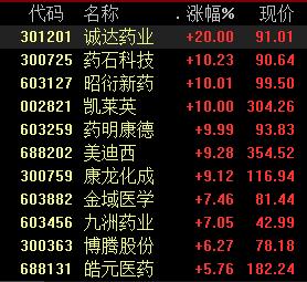 周二午后,医药股继续反弹,截至发稿,诚达药业20%涨停,药石科技涨超10%,昭衍新药、凯莱英、药明康德(维权)封板,金域医学、九州药业、博腾股份(维权)纷纷大涨。