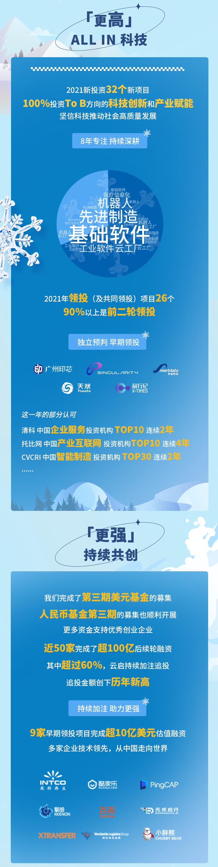 作为最早专注「科技创新+产业赋能」的专研型投资机构,云启坚信科技推动社会高质量发展,在价值投资的路上坚定前行,并取得了业内领先的优秀成绩。