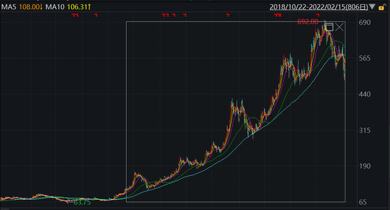 但进入2022年,整个新能源行业的股票都在大幅波动,宁德时代的股价前期也出现也大幅调整下跌。