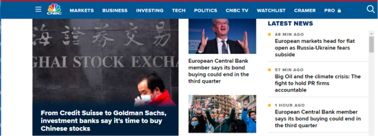 今日,知名媒体CNBC头版头条刊发题为《从瑞士信贷到高盛,投行称是时候买入中国股票了》的文章。