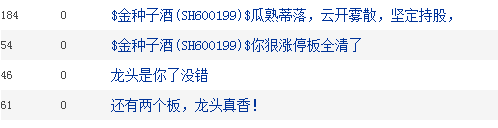 而对于16日下午股价的明显异动,股吧的投资者们炸开了锅,有人表示直呼“金种子酒龙头归来”、“龙头真香”、“云开雾散、坚定持股”,也有部分认为可能有内幕交易嫌疑。