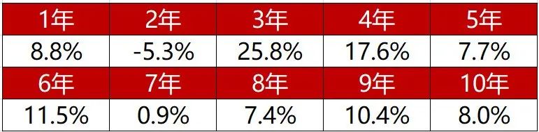虽然采用定投的方式不应对收益率有过高的预期,定投不一定比一次性投资的效果更好,但是如果考虑时间成本(简单解释,就是在时间起点拥有同样金额的资金),拉长时间周期来看复合年化收益率,也能获得不错的收益机会。