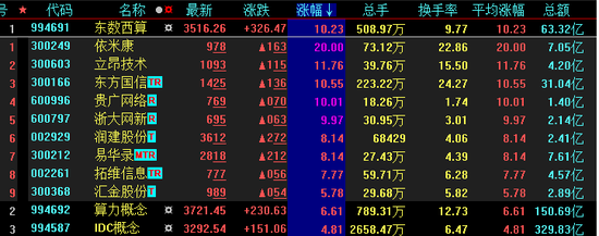 制表:张颖热点一:“东数西算”和算力概念板块联袂爆发 多股20CM涨停