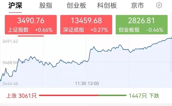 2月18日,A股三大指数表现分化,收盘涨跌不一,截至收盘,上证指数涨0.66%,报3490.76点;深证成指涨0.27%,报13459.68点;创业板指跌0.46%,报2826.81点;沪深两市合计成交额8075亿元;北向资金净买入48.38亿元;总体来看,两市个股涨多跌少。回顾本周三大指数的走势来看,上证指数期间累计上涨0.8%,深证成指期间累计上涨1.78%,创业板指期间累计上涨2.93%。
